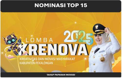Dengan penuh semangat dan antusiasme, Bapperida Kabupaten Pekalongan Selaku penyelenggara Lomba Krenova Tahun 2025, memberikan apresiasi setinggi-tingginya kepada sebanyak 54 Inovasi yang ikut berpartisipasi. Berikut merupakan hasil penilaian dewan juri yang telah dilaksanakan pada tanggal 21-22 April 2025 d. Setelah melalui proses yang ketat dan cermat, kami dengan bangga menyampaikan 15 nominasi terbaik yang berhasil lolos ke tahap presentasi berikut adalah daftar 15 nominasi Anugerah Krenova 2025 dan jadwal presentasinya